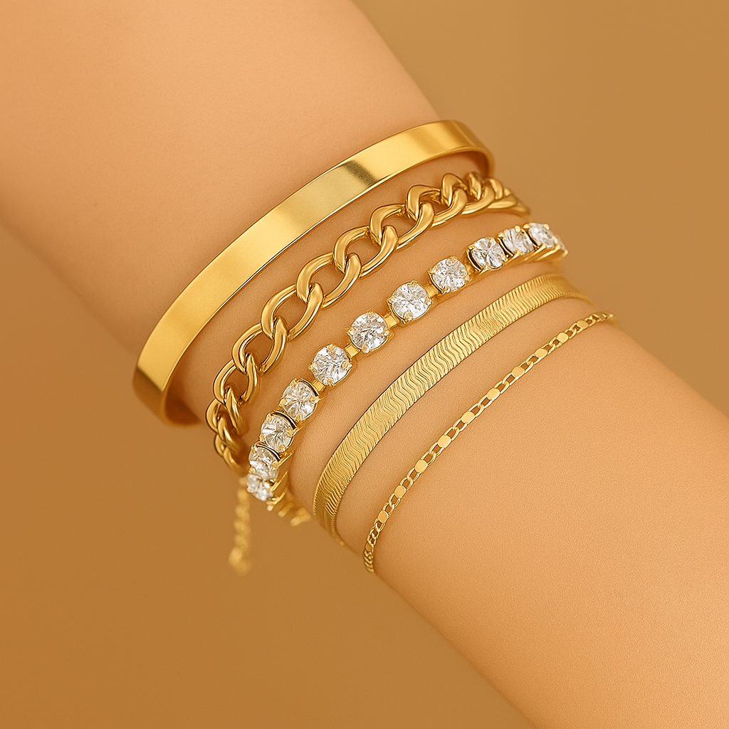 Discover the perfect bracelet or bangle to complement any style, from delicate bangles to bold cuffs. Our collection features a wide variety of designs, including classic gold, modern silver, and customizable charm bracelets. Whether stacking for a layered look or wearing a statement piece, these accessories are made to shine.